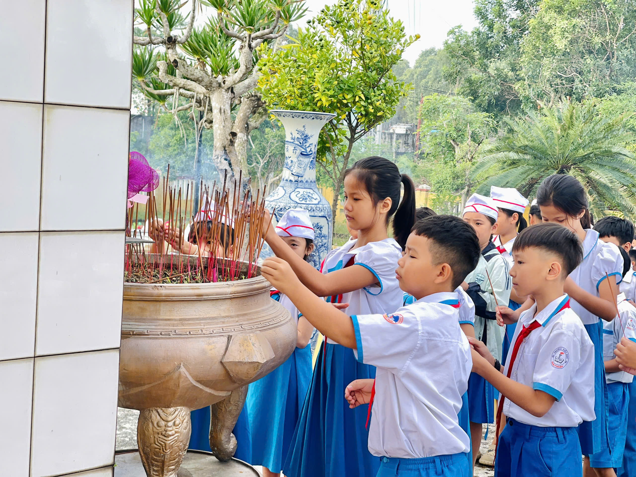 Tại buổi viếng, thầy cô giáo và các em học sinh đã nghiêm trang thắp nén hương thơm, bày tỏ lòng biết ơn sâu sắc trước công lao to lớn của các thế hệ cha anh đi trước. Những câu chuyện về truyền thống đấu tranh kiên cường, tinh thần yêu nước và sự hy sinh cao cả của các liệt sĩ đã được các thầy cô chia sẻ, giúp các em học sinh thêm hiểu, thêm trân trọng giá trị của hòa bình hôm nay.